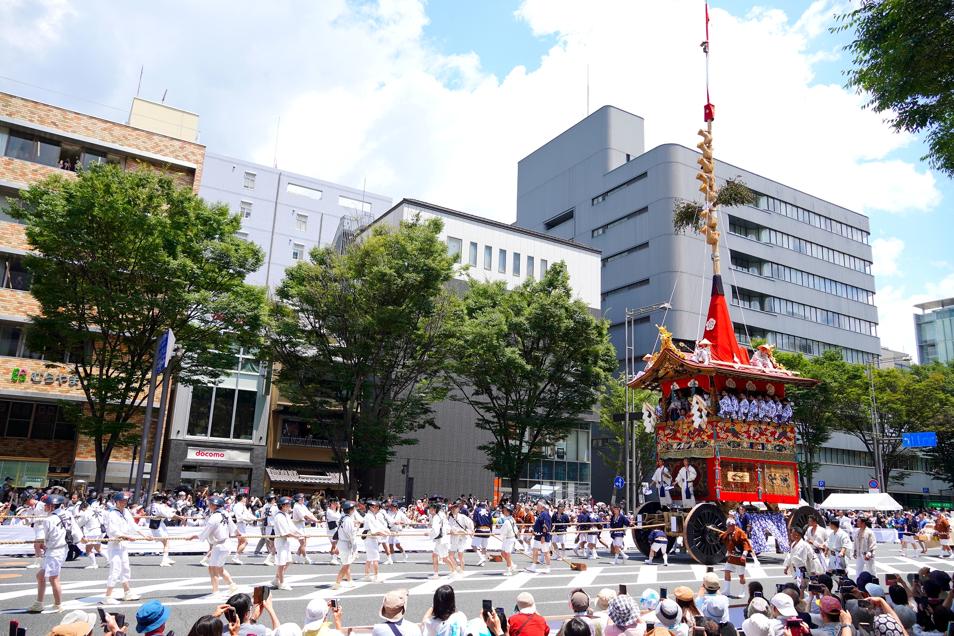 京都市役所前での長刀鉾の辻回しです