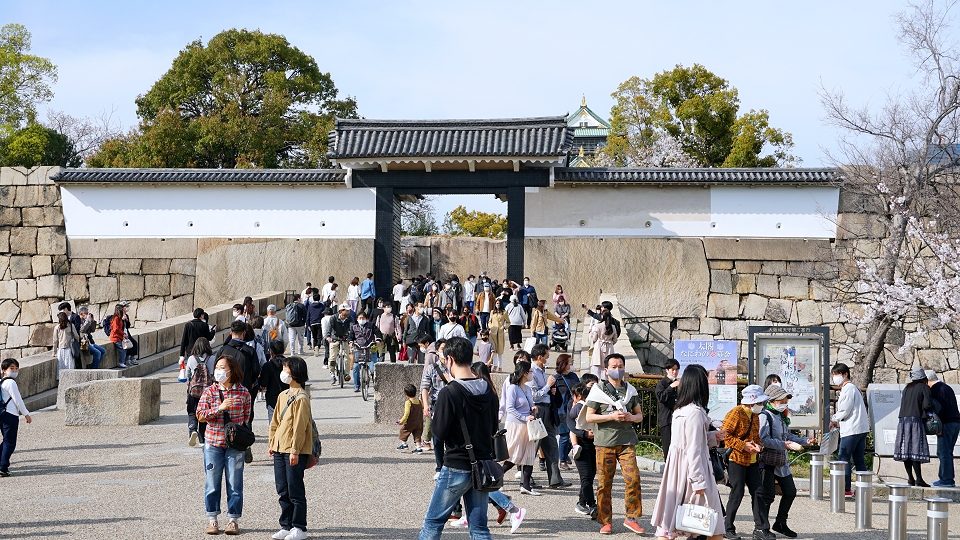 ようやく本丸への入り口桜門に・・・ さすがに人が多い・・・